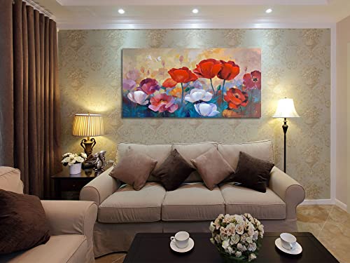 Click for More Images ?Flowers Wall Art Size: 48inx24in(120cmx60cm), wooden framed and hook mounted ready to hang. It's our original design.?Wildflowers Wall Art: Perfect flower wall decor for living room, bedroom, dinning room, kitchen,...