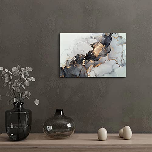 Click for More Images ??Abstract Wall Art Size: Black and gold wall art 12" x 16" x 1pcs (30cm x 40 cm x 1 panel), Abstract black white and gold canvas wall art decor already come with wrapped canvas wooden framed and hook mounted ready to...