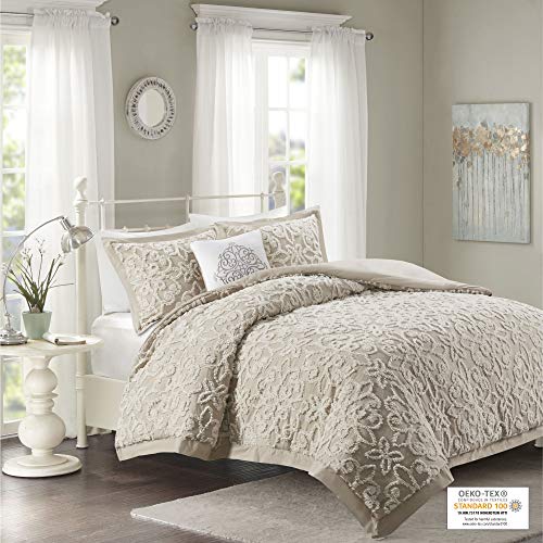 Click for More Images This comforter features a 100% cotton face and reverse with an elegant chenille tufted floral medallion design centered on top of the bed.Sabrina 3-Piece Tufted Cotton Chenille Floral Medallion Comforter Set provides a soft...