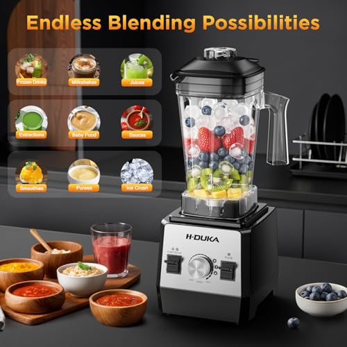 Click for More Images High-Performance Blending: Featuring a 1400W motor with 25000 RPM speed and durable stainless steel blades, H-Duka blender efficiently processes ice, frozen fruits, and firm ingredients into smooth, creamy textures - helping...