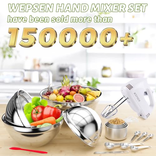 Click for More Images Since its launch, it has been recognized by over 150,000 users! It's the best choice for a family hand mixer with mixing bowls set!?Handheld Mixer with Bowls Baking Set: This is a versatile combination, a great kitchen...
