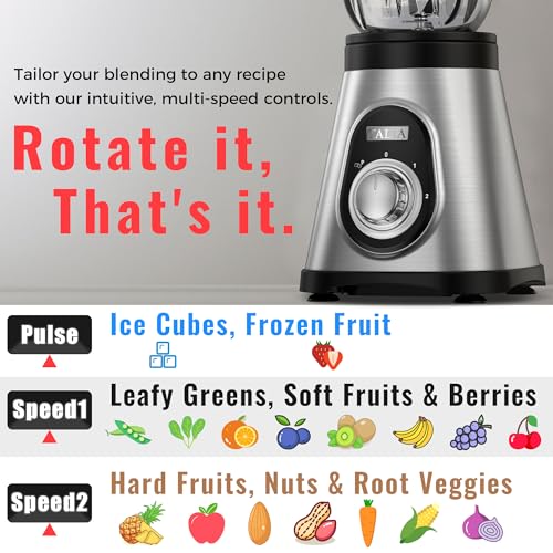 Click for More Images 1800W Maximum Power: Aeitto blender with the 1800W peak power delivers high performance. It effortlessly handles professional tasks—from smoothies and soups to nut butters—in seconds, minimizing wait time while...