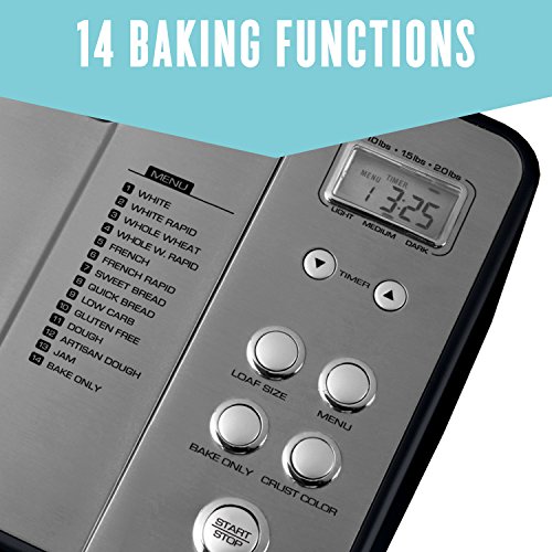 Click for More Images Homemade Bread, Jam & Artisan Dough in 3 Easy Steps Add Ingredients, Select Cycle and Press Start Automatic Keep Warm After Cooking14 Settings Including Gluten Free, Rise and Artisan Basic, French, Whole Grain, 15 LB...