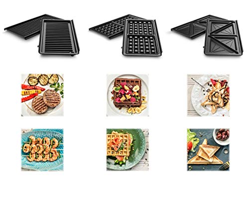 Click for More Images A VERSATILE MULTITASKER: The first compact grill with interchangeable plates, this compact, 3-in-1 grill does it all, from fluffy waffles to perfectly pressed sandwiches and juicy grilled steaksHEALTHIER COOKING: The...