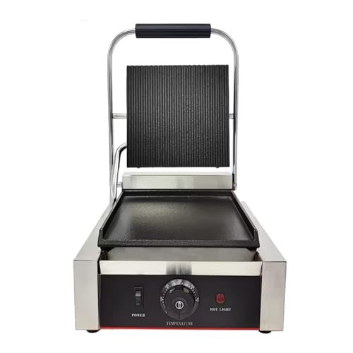 Click for More Images Panini contact grill perfect for grilling and cooking paninis and steaks to meat,vegetables and burgersThe cooking temperature is adjusted by a simple thermostat button from 50°C to 300°CElectric contact grill has...