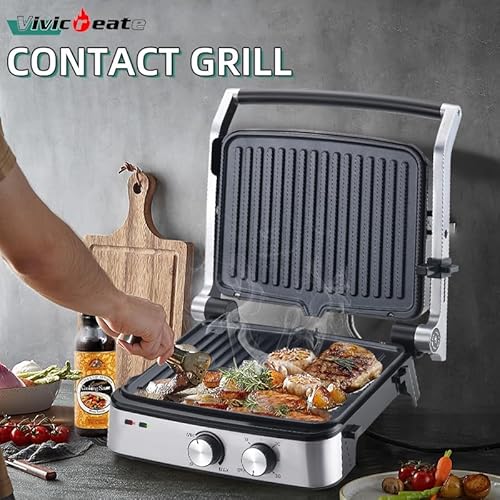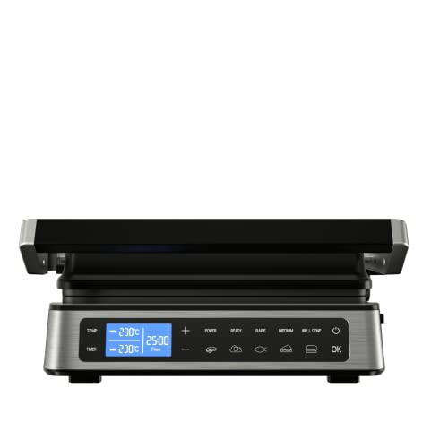 Click for More Images Versatile Cooking: 5-in-1 contact grill with double-sided nonstick plates for grilling, panini pressing, baking, and more.High-Quality Build: Stainless steel construction with cool-touch handles for safe operation.Precise...