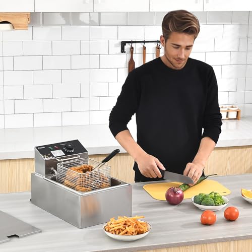 Click for More Images SOLID CONSTRUCTION: This commercial deep fryer made of heavy duty thickened 0.8mm stainless steel. Thickened tank and baskets for durable use, Metal knobs are more durable.304 stainless steel heating tubes are more solid.The...