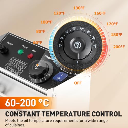 Click for More Images THERMOSTATIC CONTROL - Our commercial deep fryer has an adjustable thermostat with a temperature range of 140? to 392 ?. Thanks to the thermostatic control, you can now adjust the temperature of the oil to accommodate the...