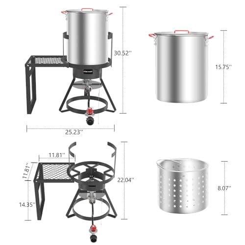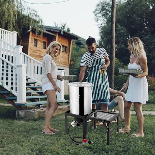 Click for More Images Multi Functional: Outdoor propane turkey fryer with 30QT fryers pot and aluminum basket, used for fryer turkey, deep fryers meat, canjun style seafood, crawfish & crab boilingHigh Heat Outdoor Cooker Burner: The heavy duty...