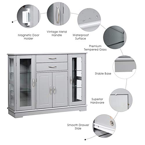 Click for More Images Durable Buffet Cabinet - Made of durable MDF board, the sideboard buffet is solid and stable. With the use of magnet device, it is convenient for your storage.Storage and Display - 2-tier with adjustable middle shelves...