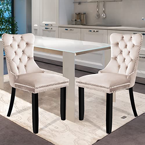 Click for More Images Dining Chairs feature a classic design that is both simple and elegant.It is Ideal for dining room, kitchen, hotel, restaurant, cafe and moreThe nailhead trim on the seat and the curved back legs makes the side chair looks...