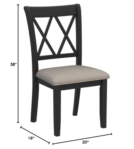 Click for More Images The set includes two cross-back dining chairs finished in rich blackChairs frame is made of solid rubberwood for long lastingComfortable foam cushioned seats with tan linen-look upholsteryDimensions: 19"D x 20"W x 38"H. Seat...