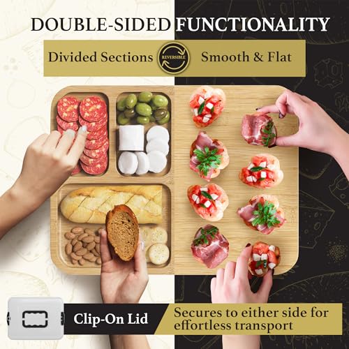 Click for More Images Versatile Design: Enjoy our 2 in 1 serving board with lid that attaches to either side of the charcuterie board. A protective container perfect for entertaining guests, family gatherings, or building an impressive food...