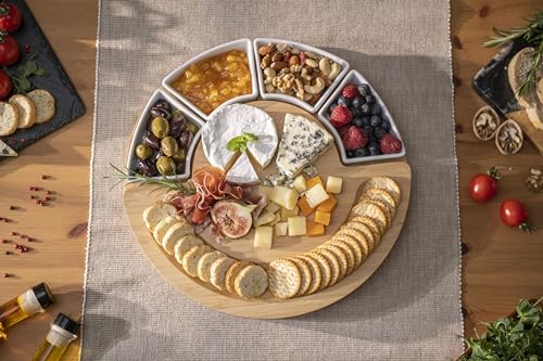 Click for More Images Original German Design: Our bamboo wood cheese board set is designed and quality-checked in Germany. U.S. Patent No.: US D906,067 S. This COMPLETE set includes 4 bowls and 4 knives to hold and slice all kinds of cheese types...