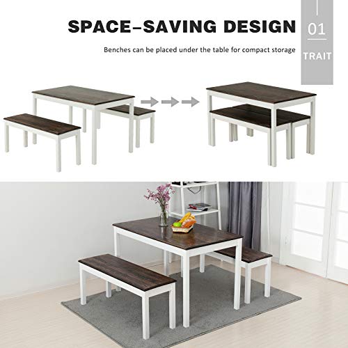 Click for More Images Sturdy Frame and Durability - Kitchen table set made of 100% solid pine wood and not easy to break. Waterproof and anti-scratch, very easy to clean.Space-saving Design - The benches can be stored under the table when not in...