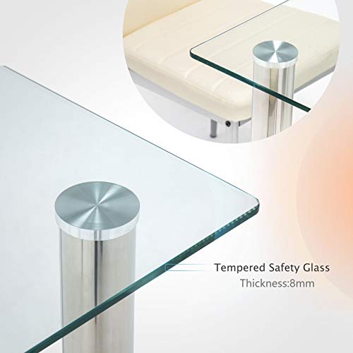 Click for More Images Dining Table for Home -1 tempered glass top table. Seats up to 8 people, ideal for small dining area;Tempered Glass Tabletop - A great combination of top quality tempered safety glass (8mm) and rust-resistant, steel frame...
