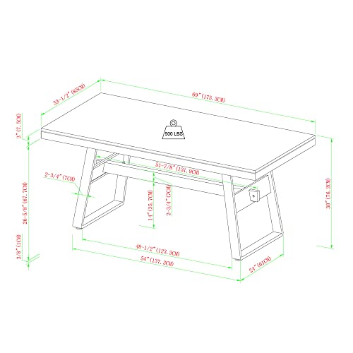 Click for More Images ???????? ???? ?????? ??????: Overall dimensions: 72 inches long x 35.43 inches wide x 30.12 inches high. Table thickness is 2.16 inches. This farmhouse style rectangular table seats 6/8/9/10 people. The spacious tabletop...