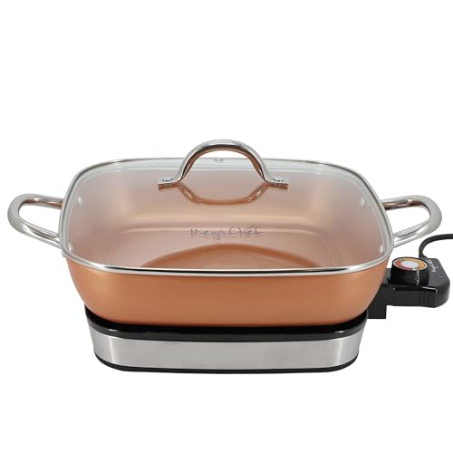 Click for More Images MegaChef Electric Fry Pan – Sleek copper-coated design for stylish and efficient cooking.Spacious Cooking Area – 11.81” x 11.81” surface, perfect for family meals and large portions.High-Powered Performance – 1400W...