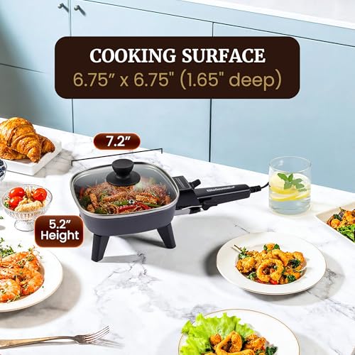 Click for More Images MegaChef Electric Skillet – Stylish black design with a durable copper coating for efficient cooking.Compact & Versatile – 7.87” x 7.87” cooking surface, perfect for small kitchens, dorms, RVs, and travel.Efficient...