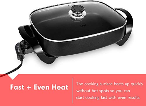Click for More Images Powerful 1400W Heating System: Experience efficient cooking with our electric pan for cooking, featuring a powerful 1400W heating system. This electric skillet griddle is perfect for searing, sautéing, frying, or simmering...