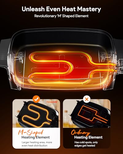 Click for More Images Powerful and Efficient: Operates at 120V/60Hz and features a robust 1400W heating element, ensuring quick and even heating for all your cooking needs.Spacious and Durable: Features a large 12" x 16.75" x 4.75" die-cast...