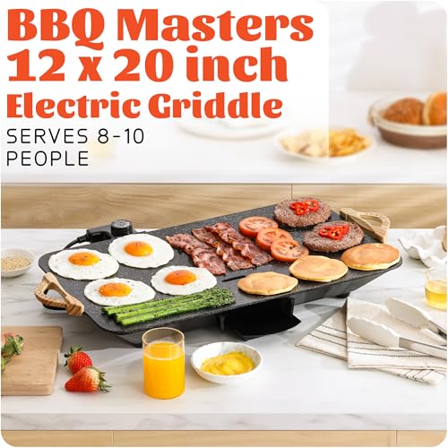 Click for More Images Extra-Large Cooking Surface: The BBQ Masters Electric Griddle provides an extra-large 12x20 inch surface, perfect for cooking large meals for 8-10 people—ideal for family gatherings or hosting guests1700W Rapid & Even...