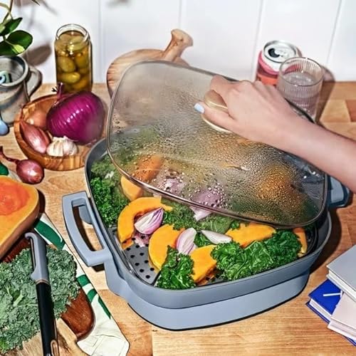 Click for More Images Sauté, steam, simmer, slow cook, buffet serve and more5 heat settings from low to highDishwasher safe, shatter resistant, tempered glass lid with steam ventLong-lasting steel with soft matte premium finishPowerful 1500-watt...