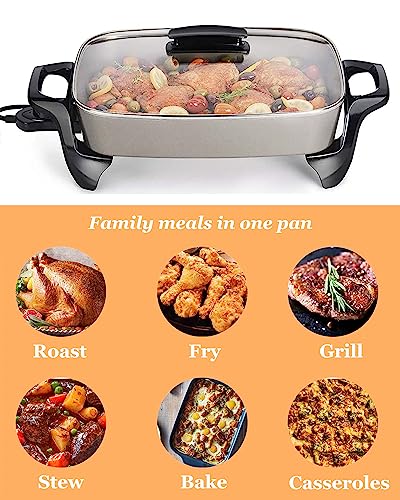 Click for More Images Multifunction electric skillet: roast fry grill stew bake make casseroles and moreCeramic nonstick surface inside and out: for stick-free cooking and easy cleaningExtra-large capacity:16-inch electric frying pan with 3-inch...
