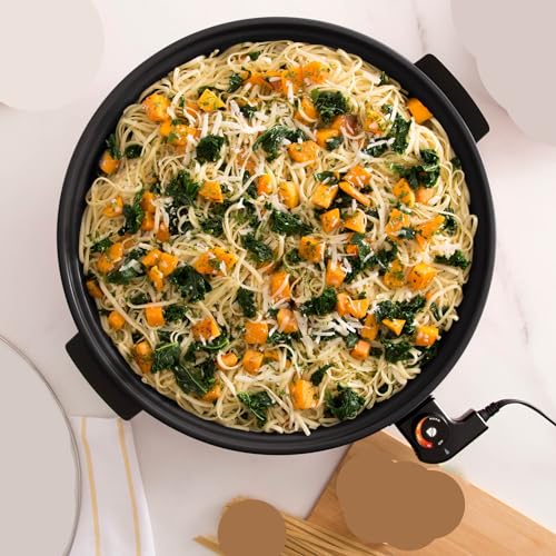 Click for More Images Versatile and Convenient: Cook, serve and clean with ease using this electric skillet that can braise, sauté, fry and sear with a PFOA free non-stick coating and a cool touch handleAdjustable and Visible: Adjust the...