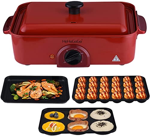 Click for More Images MULTIFUNCTIONAL PAN: This electric griddle with 3 non-stick and removable cooking pan which suit for fried eggs,BBQ, takoyaki, pan cakes,steaks and other different cooking methods.3 TEMPERATURE SETTINGS: This Electric...