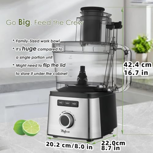 Click for More Images ?Large feeding chute? Save time and effort by using a wide mouth large feeder chute of the Magiccos 14 cup food processor to process medium-sized vegetables and blocks of cheese without cutting them into smaller...
