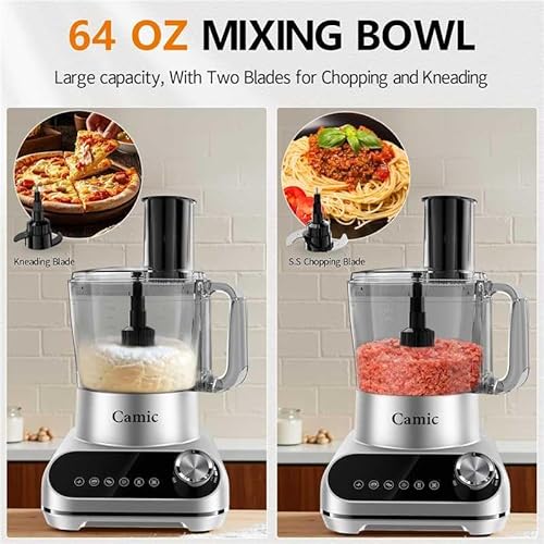 Click for More Images All-in-One Food Processor & Countertop Blender Combo– Effortlessly chop, slice, shred (fries/veggies), grind meat, knead dough, blend smoothies, juicing, nut butters, and more with 2 versatile BPA-Free cups (88 oz food...