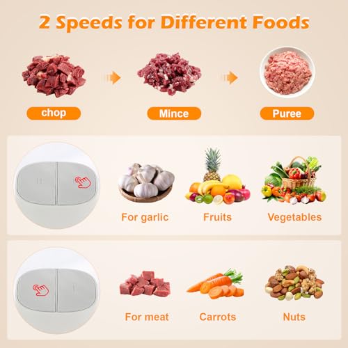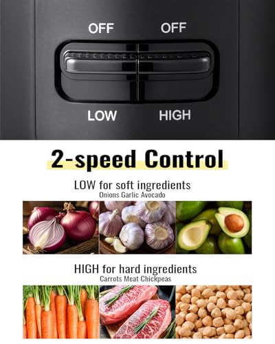 Click for More Images 2 SPEEDS CONTROL: This food chopper offers versatility and control for all your meal prep needs. Pulse control— press to chop, release to stop instantly. Choose HIGH speed for tough ingredients or LOW speed for delicate...