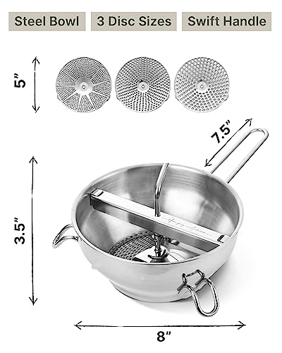 Click for More Images PREMIUM STAINLESS STEEL CRAFTSMANSHIP: Built to last, our food mill is made from heavy-duty stainless steel that resists rust, warping, and wear—even when working with hot foods like stewed tomatoes or boiled apples. It's...