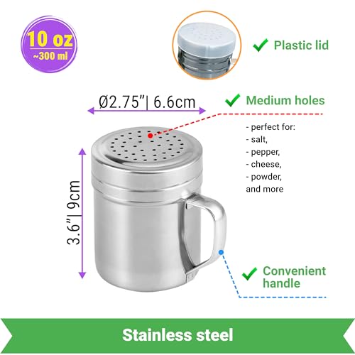 Click for More Images Double handle scoop! For both left-handed and right-handed - choose the universal solutionPerfect set to serve snacks: 10 oz dredge shaker to dispense seasonings and popcorn metal scoop to serveMulti-purpose speed dual...