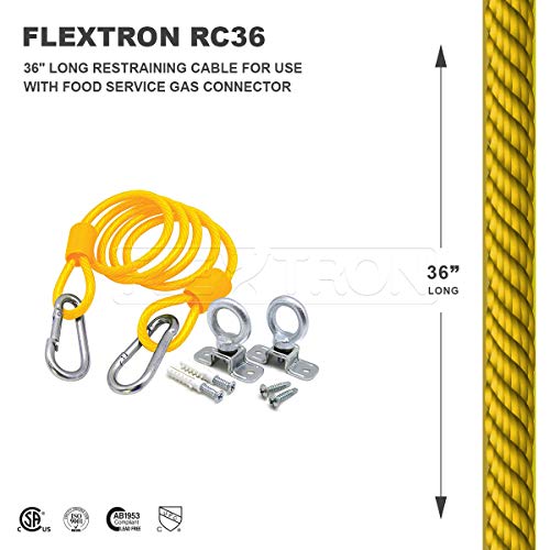 Click for More Images 36 Inch Long Restraining Cable for Use with Food Service Gas ConnectorComes with Screws and Fixtures; Meets all Applicable StandardsANSI Compliant; Coiled Plastic-Coated SteelLimits Movement of Mobile Equipment to Protect...