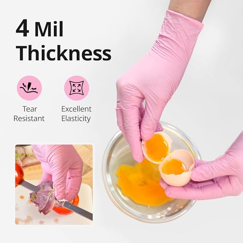 Click for More Images 4 MIL THICKNESS: Our 4 mil nitrile gloves shield against liquids, oils, glass, sharp objects, and chemicals. Whether for daily cleaning or tough jobs, these gloves offer superior protection and peace of mindSKIN-FRIENDLY:...