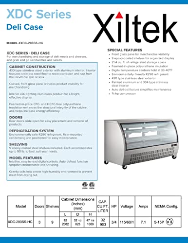 Click for More Images Dimensions: 82" W x 32.5" D x 42.9" HLED LightingStainless steel with 9 shelvesR290 RefrigerantEmbraco Compressor More Information...