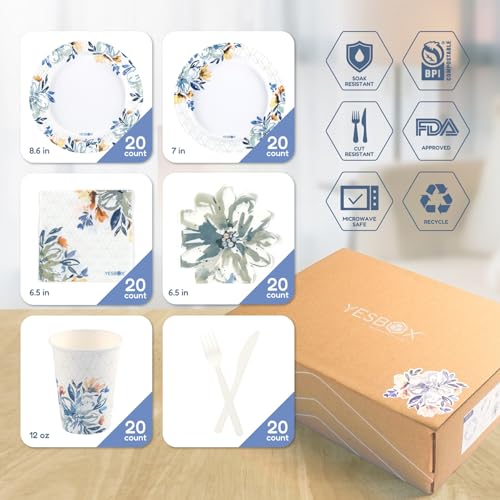 Click for More Images Eco-Chic Tableware: Enjoy the fusion of sustainability and style with our 12 oz paper cups, 7 inch dessert plates and 8.6 inch dinner plates, perfect for any eco-friendly celebration.Heavy-Duty Durability: No more worries...