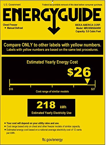 Click for More Images External Product Dimensions: 24.7 X 21.7 X 33.5(inch). Recessed handle Full 1-Year / Compressor 2-Year WarrantyThermostat from -12 to -28 Degrees (Great for Storing Frozen Food, Ice Cream, Ice, etc)5 cu ft Mechanical Control...