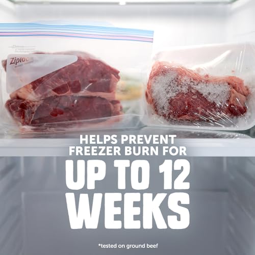 Click for More Images Food Preservation: Ziploc Brand Freezer Half Gallon bags help protect against freezer burn for up to 12 weeksHalf Gallon: The perfect size for when a quart bag is too small and a gallon is too bigKeeps Food Fresh: Ziploc...