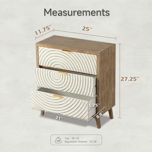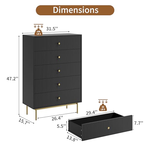 Click for More Images Modern Design: The fluted drawers of this wooden dresser are a minimalist masterpiece, enhanced by a smooth finish and elegant gold handles. It effortlessly adds a touch of sophistication to any room.Large Capacity: This...