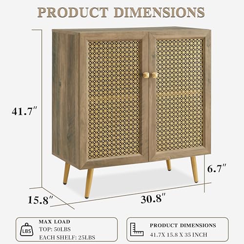 Click for More Images Classic & Modern: The buffet cabinet are paired with metal mesh and bohemian style, the clean lines and wood grain of the buffet give it a modern and sleek appearance, making it suitable for most home decorsVisible Cut-out...
