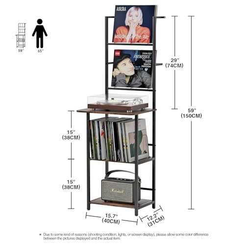 Click for More Images ??Retro Classic Design ? The mid-century record player table combines the rustic brown wood grain with black metal stand, which retains the vintage feel of the wood grain without compromising the modern industrial style. The...