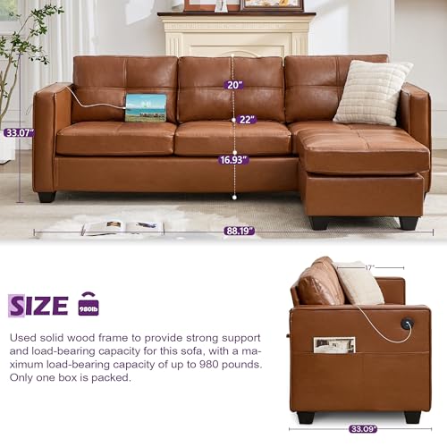 Click for More Images ?Perfect Contemporary Brown Leather Sofa?TYBOATLE sectional couches has a quality aesthetic design. This comfortable sofa is ideal for any space, with a wide sofa arm shape, convenient arm side pockets, and a highly...