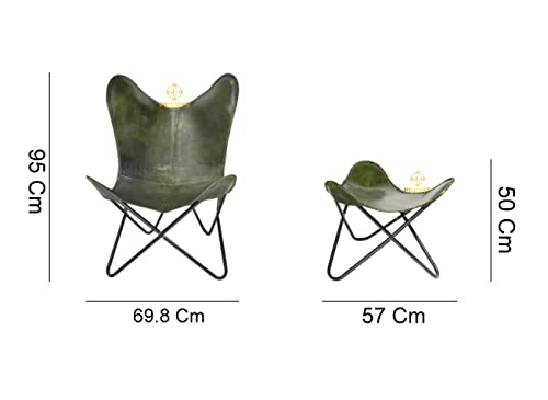 Click for More Images ? Origin: India Color: Green Material: Leather Dimensions: Chair 69.8 X 58.4 X 95 (L X B X H) Cms Approx 27.5 X 23 X 37.4 (L X B X H) Inches Approx Stool 57 X 57 X 50 (L X B X H) Cms Approx 22.4 X 22.4 X 19.6(L X B X H)...