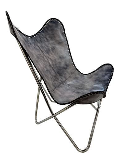 Click for More Images Color: Grey color Steel Silver or Black Iron FrameOur vintage-style real leather butterfly chair has been ergonomically designed for full relaxation after a busy day.Durable & Heavy Duty - This classic Patio Chair is...