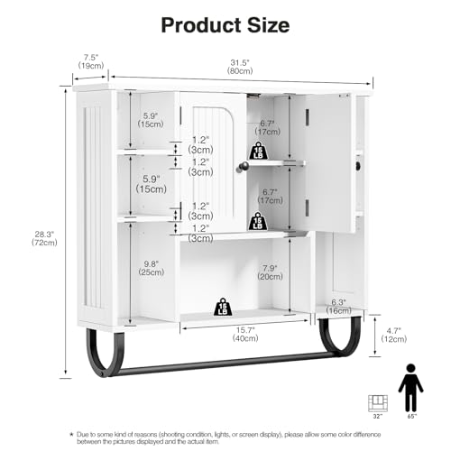 Click for More Images Large Storage Cabinets with Adjustable Shelf - The over toilet storage cabinet is designed with Adjustable shelves . You can adjust the distance according to the height of the items that you place in the wooden wall cabinet....