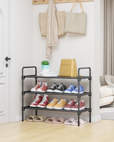 Click for More Images LARGE CAPACITY: This shoe rack for front door entrance measures 27.6" x 11.8" x 22.6", offering a compact yet spacious design that holds up shoes. It provides ample room for various types of footwear, including sneakers,...