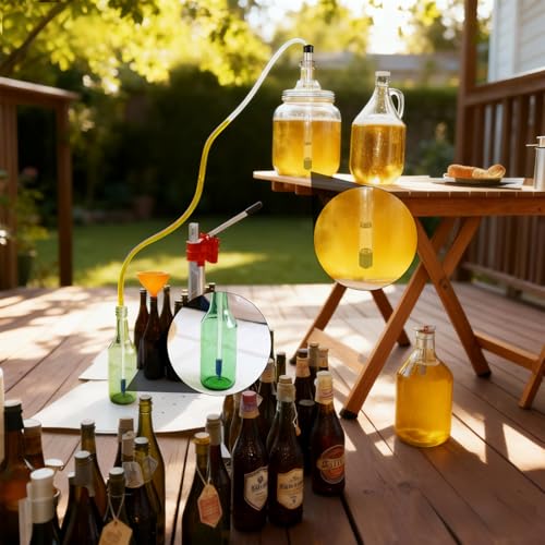 Click for More Images Efficient Wine Siphon Kit: this siphon for wine makings includes pump, 6 ft tubing, bottling wand, clamp, 4 airlocks & 4 drilled stoppers, designed for transferring liquids easily; In addition, there is a 100ml measuring...
